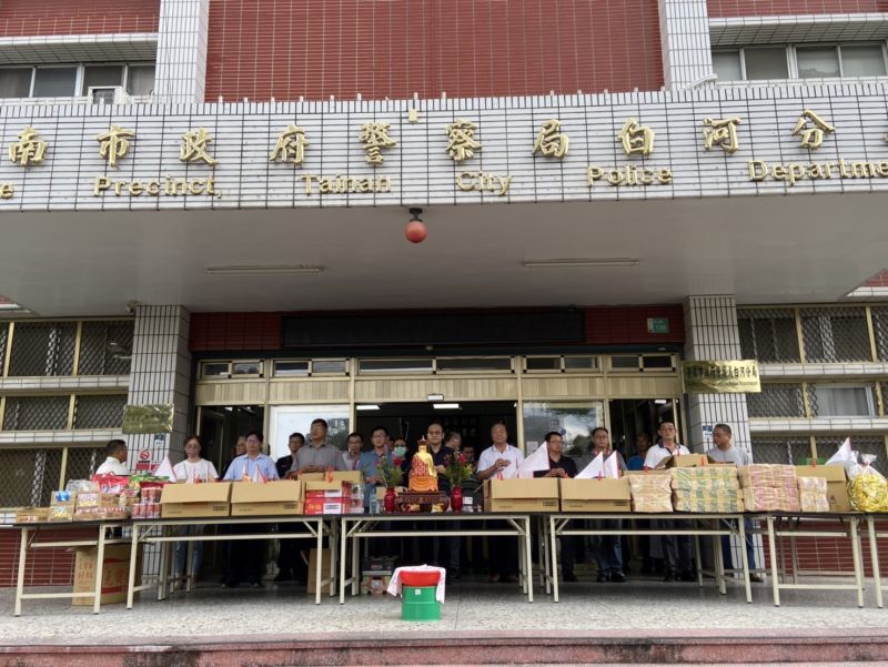 為祈求轄區內治安穩定、交通順暢以及員警執勤平安,白河警分局8月16日(農曆7月13日)下午1時,在該分局大門前舉行中元普渡祭拜儀式,由白河警分局長施宇峰率領各單位主管及所屬同仁參與這項傳統的祭祀活動。