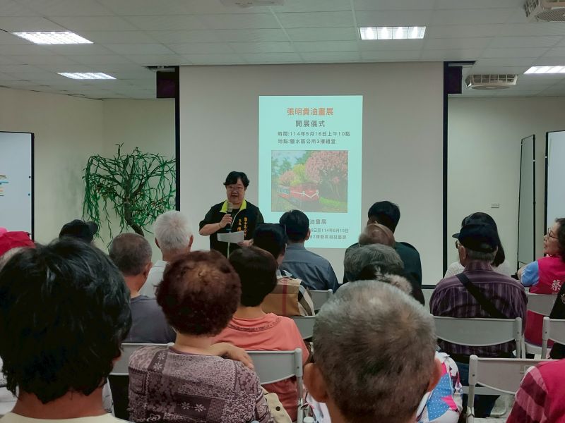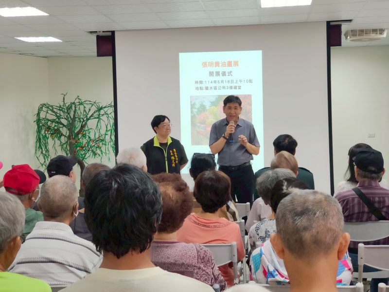 台南市鹽水區公所於114年5月16日(星期五)上午10點於鹽水區公所3樓禮堂舉辦「張明貴油畫展」開展儀式,邀請藝術家張明貴先生開展,現場邀請里長、社區理事長及各學校校長與民眾齊聚品畫。