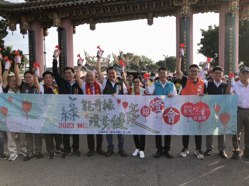 台南市歸仁區公所於今日(9月16日)星期六上午6時假武當山上帝廟舉辦「2023歸仁『綠』能奇緣-漫步健走迎燈會」活動,本次活動提前帶領民眾感受「2024台灣燈會在臺南」之氛圍,沿途亦見證沙崙綠能科學城之相關建設成果。