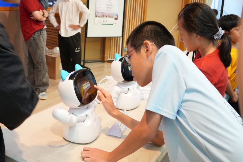 在實作交流分享環節,現場播放南大國網中心台語開源平台於2025年7月法國IEEE國際會議及8月馬來西亞AI Horizon 2025國際年輕學生STEM教育學習工作坊的推廣紀錄影片,隨後進行「南大真平國網TAIDE台英語AI學伴機器人」推廣計畫說明與人機共學系統展示。與會者也能實際操作由南大、國家高速網路與計算中心及真平出版社共同開發的學伴機器人,體驗生成式AI影像、AI對話功能,並與三台具備台語、英語及日語語音能力互動的AI機器人。