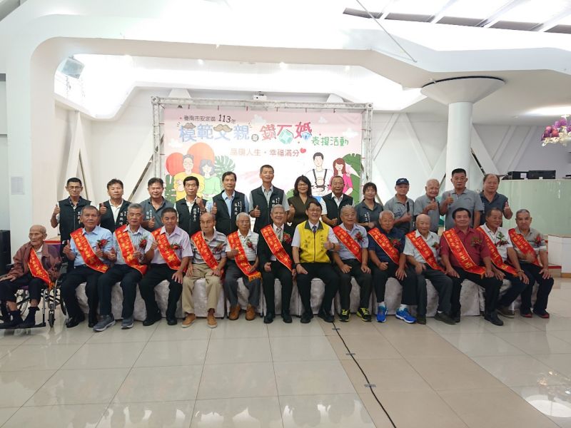 鑽石婚楷模分別為: 蘇林里梁水南-蘇片、港尾里鄭登福-鄭王恆、中榮里翁連順-翁鄭秀花及新吉里陳博誠-陳李美智。其中蘇林里晶鑽爸爸郭天明及蘇林里鑽石婚梁水南-蘇片伉儷將代表安定區,接受市政府表揚。