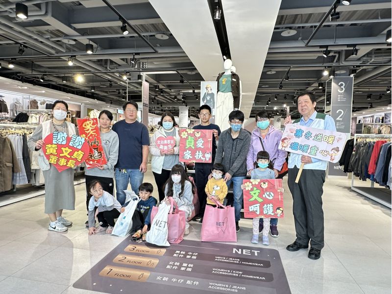 NET(主富服裝)第16年捐贈提貨券給家扶中心兒少購買新衣,今年北台南家扶再次獲贈80萬預計有400童由家長陪同分別於1/24佳里門市、1/25新營門市及1/31永康門市挑選新衣,16年來累積捐贈北台南家扶超過1千萬,將近6500童受惠。堪稱台灣最有佛心的本土企業!