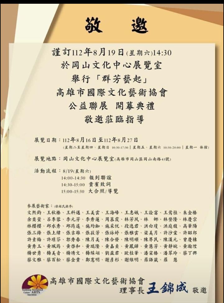 歡迎到好報臉書討論 www.facebook.com/hbnews.com.tw 歡迎使用讀者投訴、爆料信箱 呼叫善心人士~~ 漢明慈善會需要您共同關懷弱勢家庭、送愛到偏鄉 高雄市岡山文化中心心靈饗宴 歡迎民眾前往參觀 記者 | 李柔寬 高雄報導 發布時間:2023/08/18 | 22:13 Advertising Advertising 高雄市國際藝術文化協會在岡山文化中心展覽室有重大公益聯展活動「 群芳藝起」,近百位名家藝術先進齊聚展出,讓民眾有心靈及藝術的洗禮,歡迎民眾踴躍前往,明天( 禮拜六)舉行開幕典禮。 近日要聞MORE > {{item.title}} 好吃好玩MORE > {{item.title}} 好心有好報MORE > {{item.title}} {{item.content}}