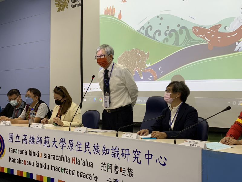 高師大校長吳連賞表示,高師大目前有三個原民專班,全校原住民籍學生近500位,是目前國立大學內唯一擁有三個原民專班的公立學校,能夠擔此重任,我們備感榮幸。高師大近年來努力於原住民知識體系的扎根成果豐碩,並致力於原漢文化融合,成效相當顯著。為了凸顯高師大對於原住民族的重視,今年二月我們將此原住民族知識研究中心正式提升到學校的一級單位。由於本校校區因其地緣位置得天獨厚,加上長期深耕原住民知識教育的議題,早已和拉阿魯哇族及卡那卡那富族建立深厚的合作夥伴關係。尤其劉主任及三位原民班班主任時常參與部落的重要活動及儀式,在田野參與的過程中建立起了深厚的情誼,相信在大家共同攜手努力下,能將課程發展成為整體原民族教育的重要一環。