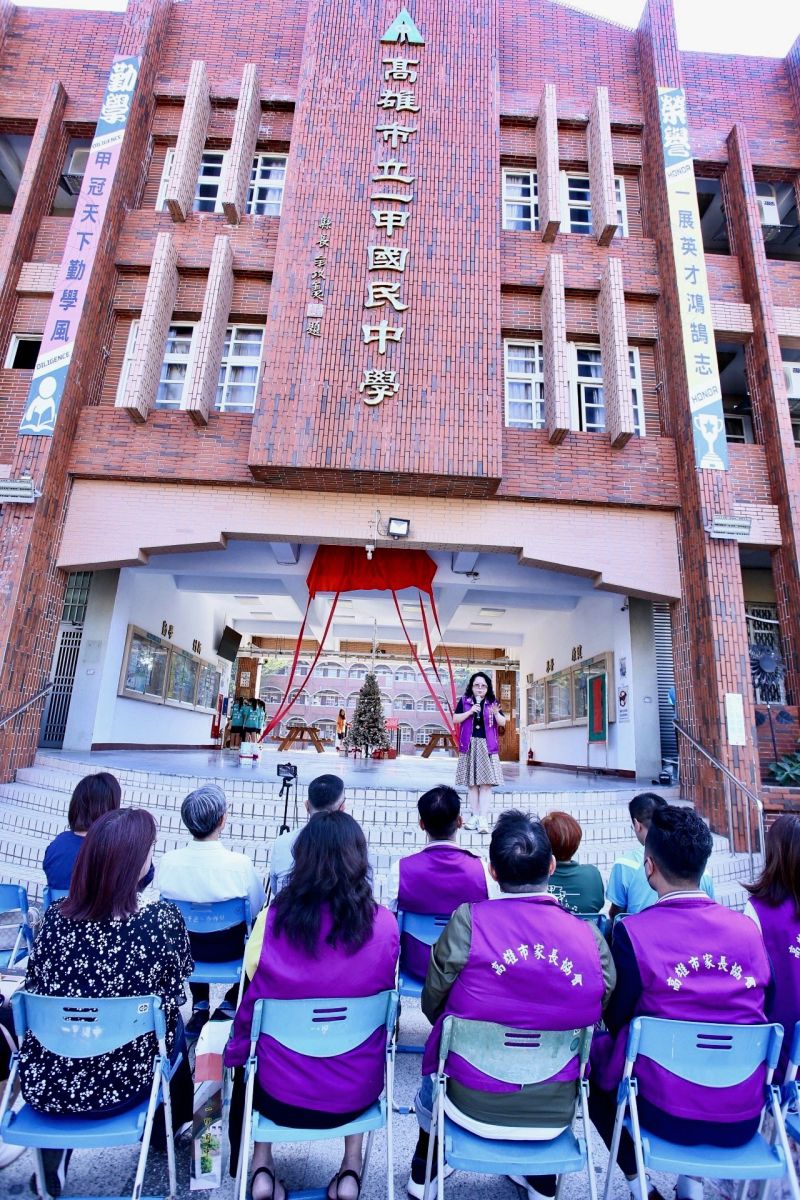 12/16日欣逢廿七年校慶的高雄市一甲國中校慶暨運動大會的同一天,在上月才勇奪高雄市音樂競賽國樂合奏特優的音樂班同學所演奏的悠揚旋律中,同時在全體家長會成員、學校顧問團及各界到場嘉賓的見證下,揭下了由高雄市家長協會所捐贈的第78方「禮義廉恥」牌匾。