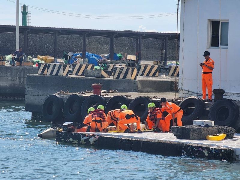 海巡署第六巡防區指揮部及南部分署第一一岸巡隊與高雄市政府消防局第四大隊梓官分隊,為強化統合海上及岸際救援能量,提升民眾防溺及自救安全觀念,於今(24)日下午在蚵子寮漁港辦理救生救難演練暨救生裝備介紹,模擬釣客失足及漁船船員落海等狀況。