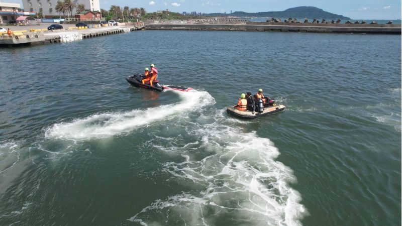 合計動員77員3車2艇1水上摩托車,更投入單旋翼無人機及遙控式動力救生圈等高科技裝備,強化岸際聯合救援機制,演練過程逼真,展現平時訓練成效。