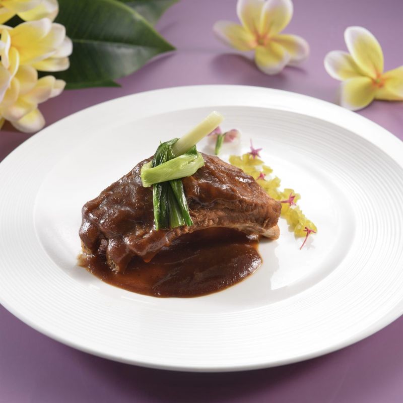 第六道主菜「老菜彌新」,是經典粵菜「春梅排骨」改良,搭配青芒果,讓老菜華麗轉生,也以酸甜明媚的梅醬帶來初夏的風味意象。