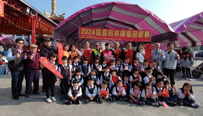 農曆春節將至,柳營區公所於今(1/26)日上午假柳營代天院舉辦「2024龍喜利來揮毫迎新春」及政令宣導活動,邀請退休人員周基山校長、何連成教授、劉博文副教授及黃松明醫師共4位書法老師現場揮毫,現場提供限量7字春聯200份供民眾免費索取,廟方志工也來共襄盛舉協助活動,還有華一幼兒園小朋友活力滿滿的鐘琴打擊音樂表演,另外現場還有提供單字春聯DIY讓大朋友小朋友一同參與,親子同樂,現場熱鬧滾滾,讓民眾提前感受新春過年的氣氛。