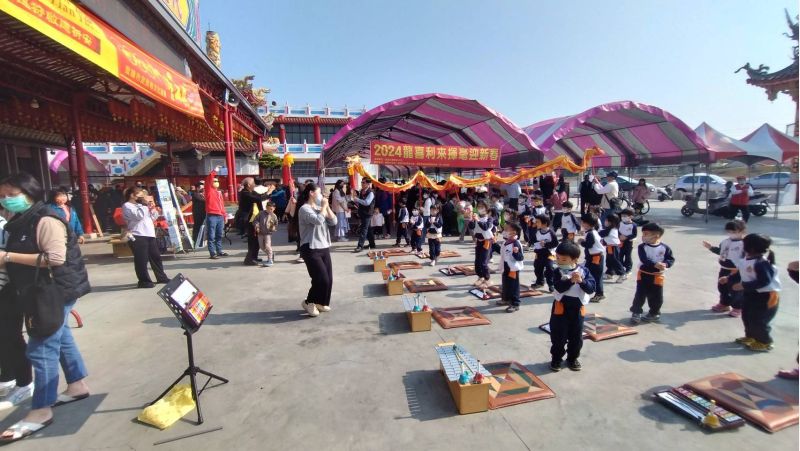 還有華一幼兒園小朋友活力滿滿的鐘琴打擊音樂表演,另外現場還有提供單字春聯DIY讓大朋友小朋友一同參與,親子同樂,現場熱鬧滾滾,讓民眾提前感受新春過年的氣氛。
