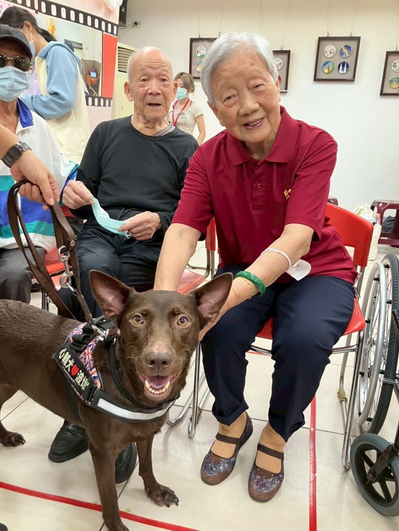 住民溫伯伯笑著說:「我以前在家裡也有養小狗,今天看見波堤(心輔犬名),又能摸牠、跟牠玩,就像回到過去一樣,真很開心。」許多長輩也紛紛表示,能與狗狗互動、觀察牠的反應,不僅讓心情愉悅,也讓生活多了期待。