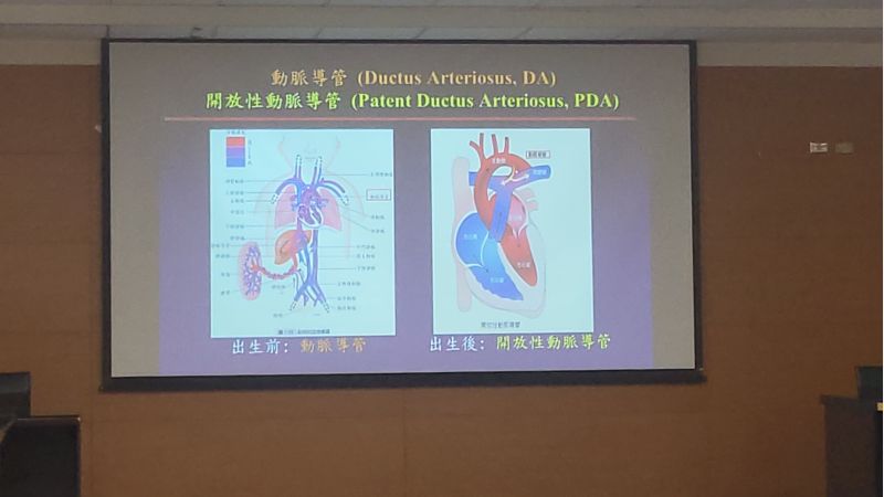 胎兒的主動脈和肺動脈間有一條「動脈導管」相通,一般足月嬰兒出生後2-3天內會自行關閉;若沒有關閉,稱為「開放性動脈導管」,主動脈血液會由此持續分流至肺動脈,導致肺水腫、肺出血、心臟衰竭而有生命危險。
