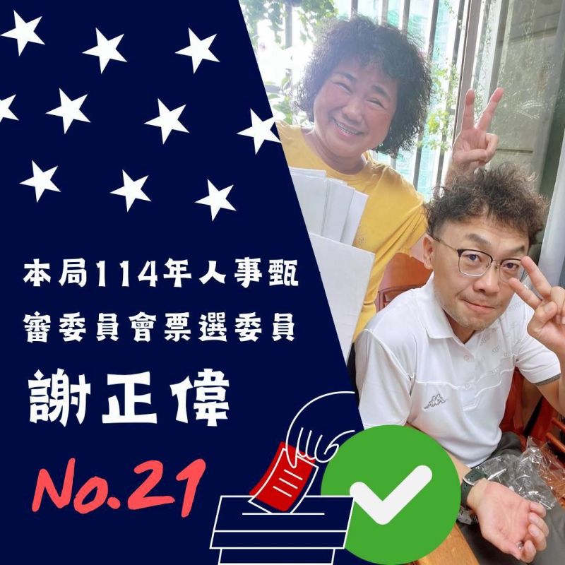 據了解,謝的當選模式不同於其他當選人,謝正偉主打的是人品,做事態度,深獲同事長官部屬的肯定加持勝出算是正面表列,而有別於其他候選人是強調任內告訴、告發過多少上級官長,一副有如關老爺忠孝節義的代表,揮舞正義大旗,把部分長官形容成「 職場霸凌惡劣分子」,算是負面表列,但也是高票當選,顯見此次的人事甄審投票,真是青菜蘿蔔各有所好,重要的是,有待日後的表現才能驗證不同人選對於甄審制度的優劣影響,到底選上的委員是在為制度、 同仁打拼謀福利;還是自抬身價沽名釣譽,大家可拭目以待。