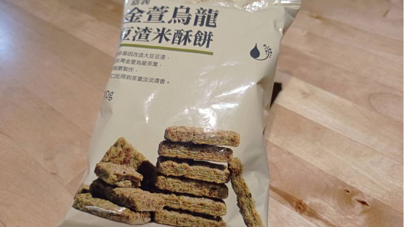 金萱烏龍豆渣米酥餅,69元:採用嘉義金萱烏龍茶粉製作,加入節水米粉以及高纖豆渣,鮮香回甘,加入節水米粉及高纖豆渣,為佐茶良伴。(僅限「良品市場」門市販售)