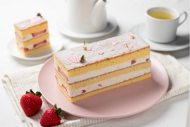 「草莓香草蛋糕」膾炙人口的蜂蜜蛋糕體,加上新鮮草莓、香草香緹,絕對是大人小孩的甜蜜首選。「蘭姆栗子奶油蛋糕」栗子軟蛋糕中加入蘭姆酒,蛋糕體飄著悠悠的酒香,加入糖漬栗子的綿密,屬於喜愛濃郁口感的大人味。即日起也提供「單片蛋糕組合」每盒可任選5種口味,須提前3天預訂,讓不想選擇通通想吃的您,一盒一次滿足。