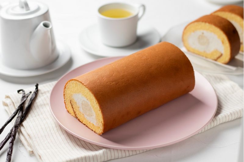 「香草蛋糕捲」海綿蛋糕包入自製卡士達,美味關鍵在於卡士達加入Mascarpone起司,質地濃稠而柔軟細緻、口感清甜而奶香飽滿。