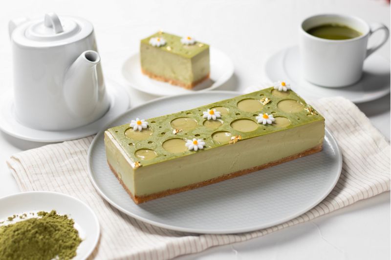 「抹茶乳酪蛋糕」豐盈香醇的抹茶回韻,混合起司的順滑奶味,搭配自製奶油餅乾基底,清新乳感、抹茶控必選。