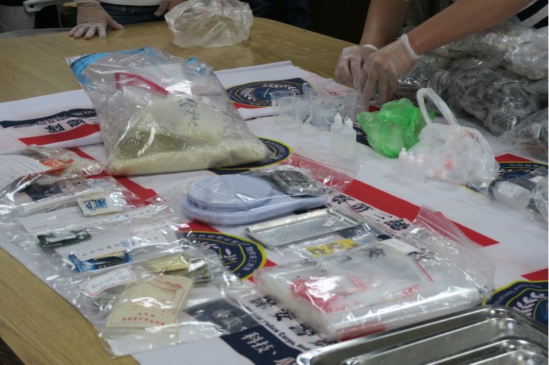 保三總隊第二大隊與刑事警察局偵查第八大隊、新北市政府警察局金山分局、日前共同突擊新北市五股區一處社區大樓、查獲跨國依托咪酯煙彈分裝據點、攔截逾1公斤餘之第二級毒品「依托咪酯」原料等證物。 圖片來源:保三第二大隊