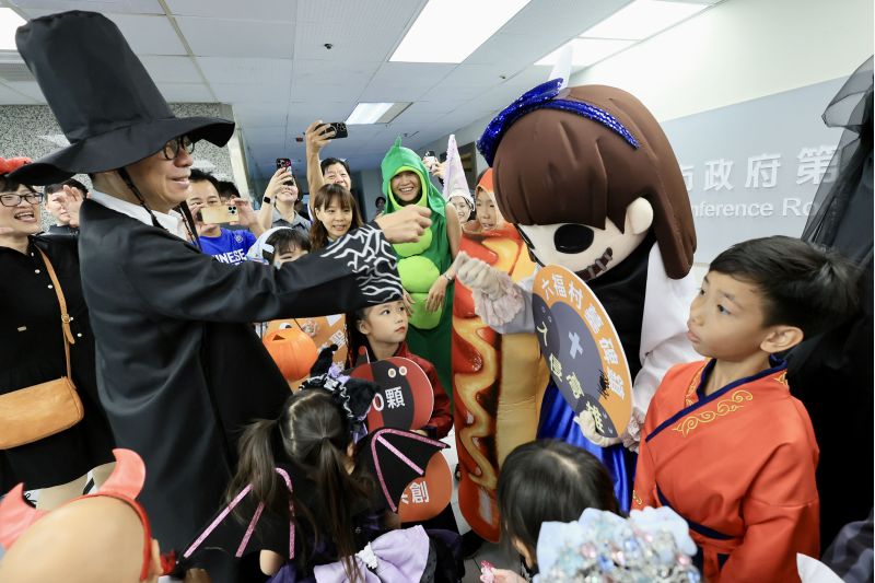 「不給糖就搗蛋!」21日高雄市政會議開始前,精心穿戴萬聖節服裝、造型的小朋友及家長,開心與變裝成動畫電影裡隊長造型的陳其邁市長互動,藉此預告市府教育局舉辦的「2025高雄萬聖節」,10月31日至11月2日將在衛武營國家藝術文化中心登場。陳其邁表示市府會做最好的準備,活動將比往年更精彩,來高雄衛武營過萬聖節是唯一選擇,歡迎全國爸爸媽媽小朋友一定要來、不要錯過。