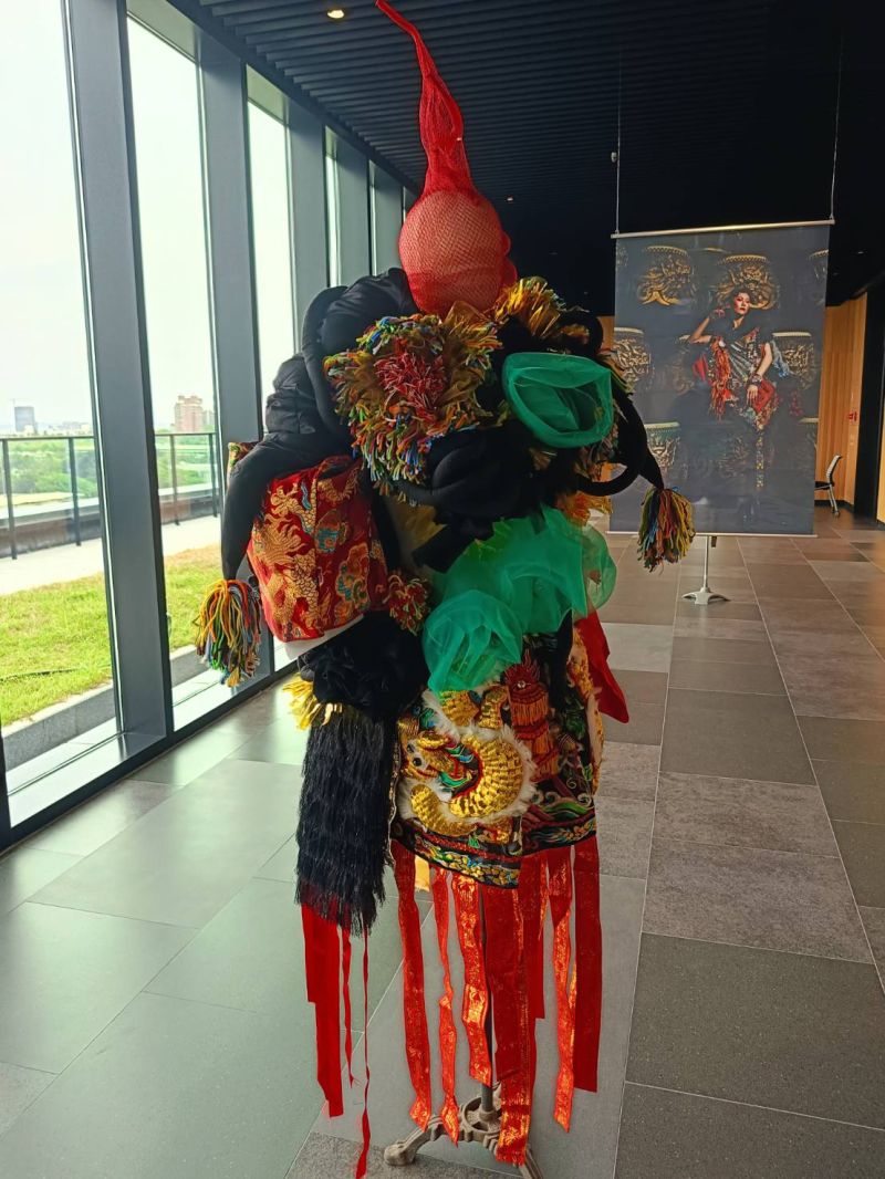 其他如《暗影神籙》與《蒼穹神韻》,則以刺繡圓紋、鏡面材料與鮮明流蘇建構出符號性的宗教場域,象徵法力、天命與精神的輪迴。立體織物與珠飾的堆疊,不僅為觀眾帶來觸覺的視覺感受,更展現設計者對材質與信仰意涵的細膩捕捉。