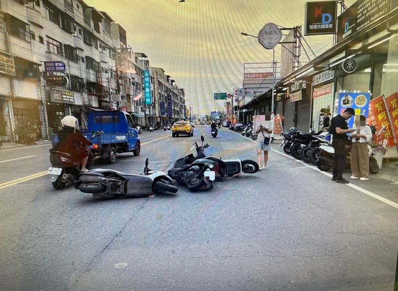 現場為一男子騎摩托車沿力行路南往北直行,至肇事地點時突往右切,後方29歲李姓女騎士反應不及,發生碰撞後倒地,接著後方61歲及58歲陳姓男騎士反應不及,再次發生碰撞,三人受傷均自行就醫,事故發生後,右切男騎士逕行駛離,本分局目前已鎖定肇事車輛34歲鄭姓車主身分,將迅速通知肇事駕駛到案說明,依法偵辦。