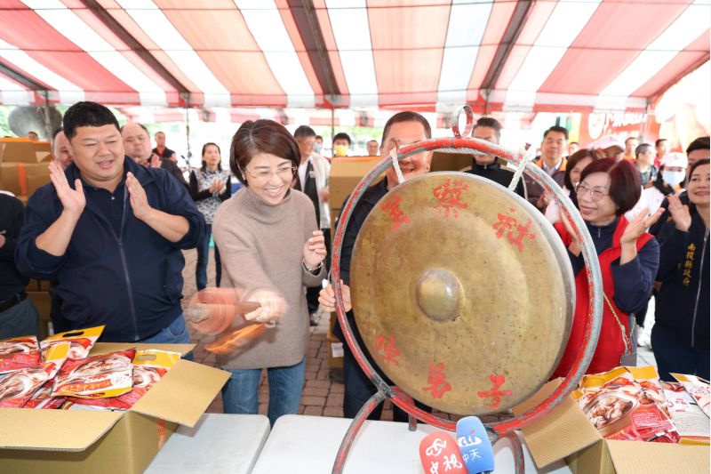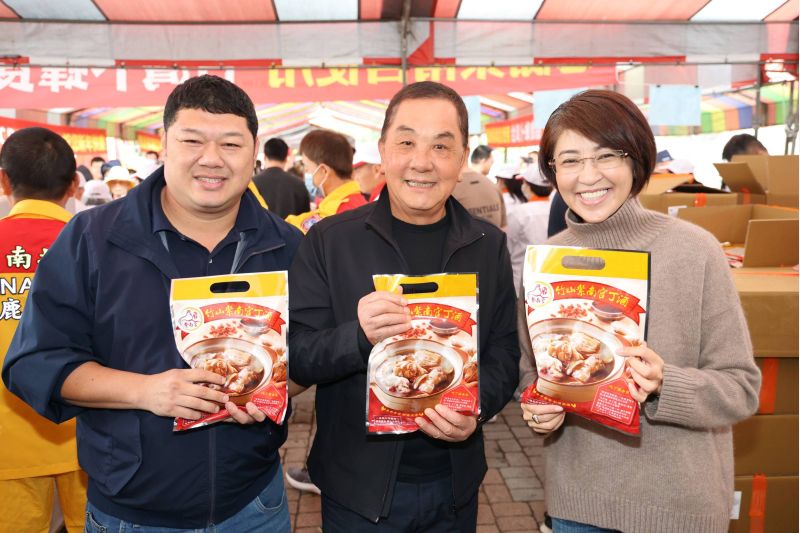 立委游顥也到場與縣長一同發送丁酒料理包。他表示,春節期間信眾絡繹不絕前來參拜土地公、借發財金、呷丁酒,都是希望新的一年平安順遂、財運亨通。