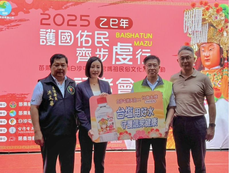 三月瘋媽祖!富有傳奇色彩的白沙屯媽祖進香活動,今年逾30萬信眾報名,再破新高。臺鹽公司董事長丁彥哲表示,臺鹽通霄精鹽廠是國內製鹽、水重地,臺鹽通霄廠與拱天宮比鄰而居,協助推廣優質宗教文化不遺餘力,除了配合活動調整園區服務時間,並免費提供溫泉泡腳溪供香客們歇腿,同時附加低碳旅遊配套服務,盼能推廣通霄在地宗教文化帶動旅遊風潮,打造地方與環境共好。