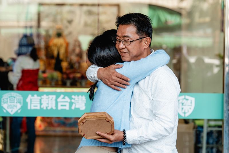 鳳山立委許智傑的女兒近日出現在掃街隊伍,他長相神似藝人陳庭妮,聲音又甜美,網友紛紛封許智傑為「國民岳父」。在投票倒數前兩天,她再度陪同父親車掃,對於爸爸曬得更黑、身形消瘦,許智傑的女兒特別獻上愛的抱抱,為爸爸加油打氣。
