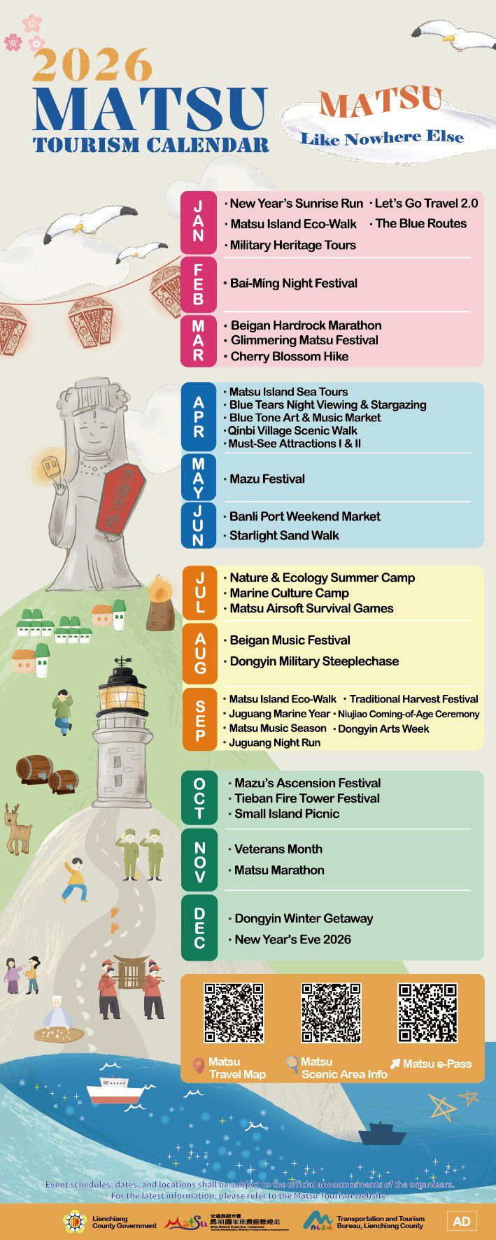 註: 各項活動實際日期如有調整,將以「馬祖 e 點通」公告為準。