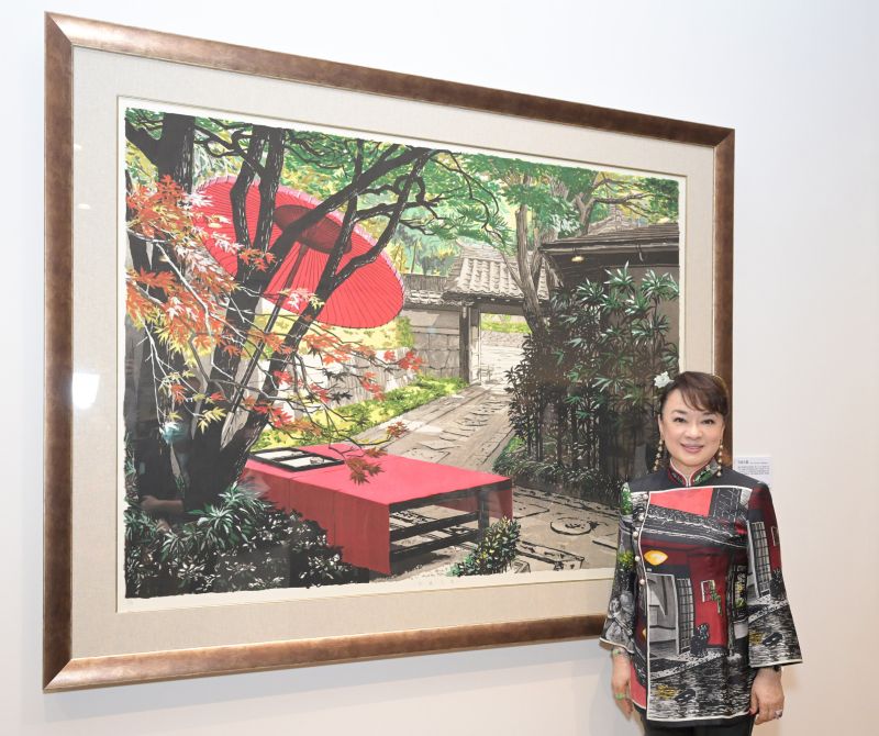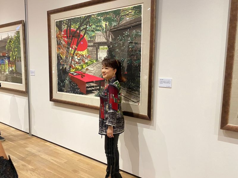 值得一提的是這次的展出舉辦於故鄉台南,也適逢台南400年重要歷程意義非凡,翁倩玉創作一幅以故鄉為主題的作品《臺南古邸》,將對思鄉情感透過作品表露無遺,翁倩玉也分享在臺南的難忘回憶。